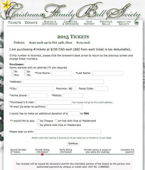 In 2009 I was asked by a friend to help the Christmas Family Ball Society make the big change from selling tickets by mail to selling tickets on-line. The Christmas Family Ball has been running since 1964 so it is a society steeped in tradition, at the same time it needed to modernize. Since 2009 the Society has been using its website to market its annual charitable event and to sell tickets on-line. This leads to huge cost savings that can then be passed along to the recipient charity. This is pro bono work.